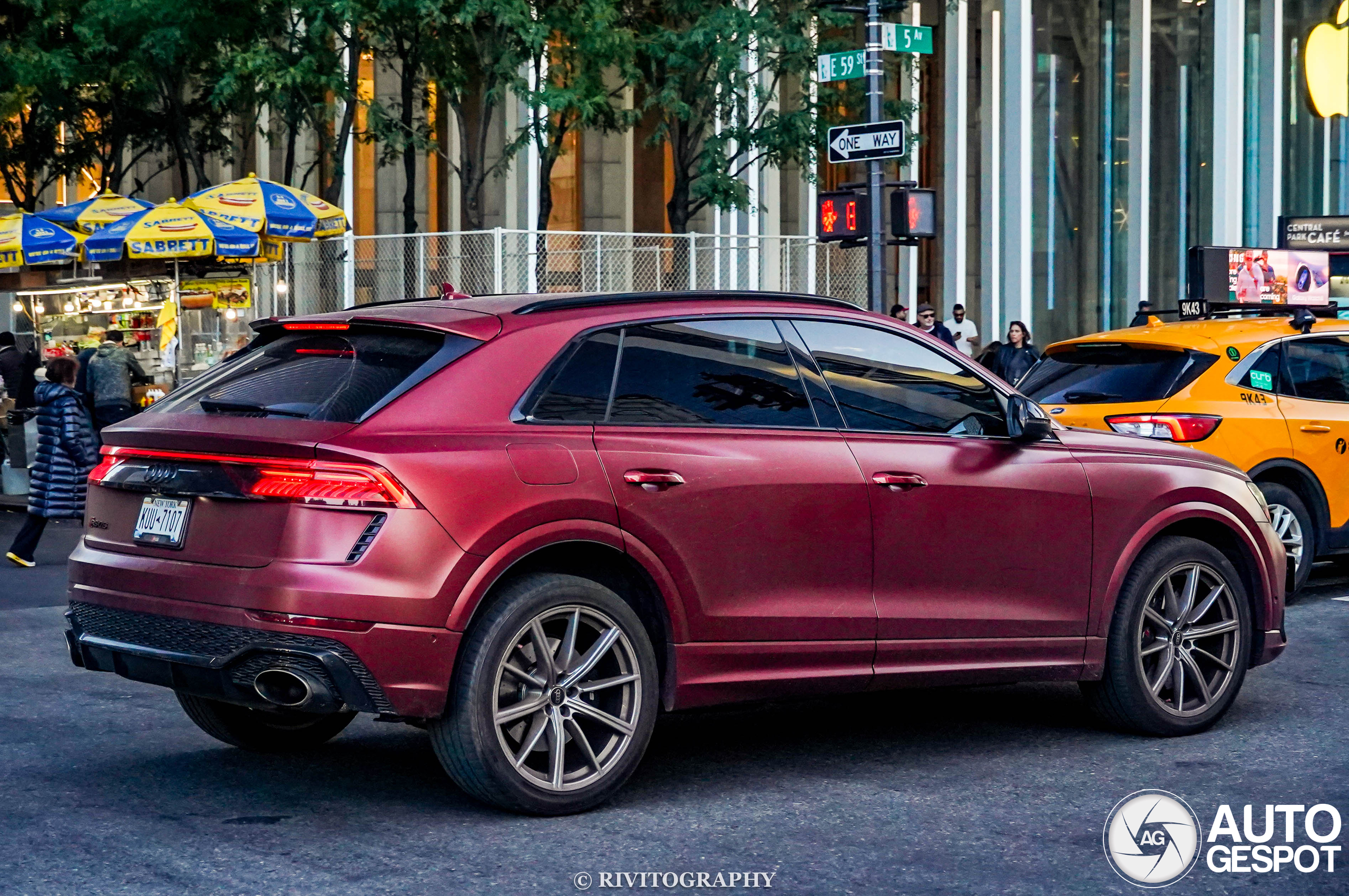 I found this 2022 Audi RS Q8 driving down 5th Avenue on 10/26/2025. Love the matte red wrap on this one!