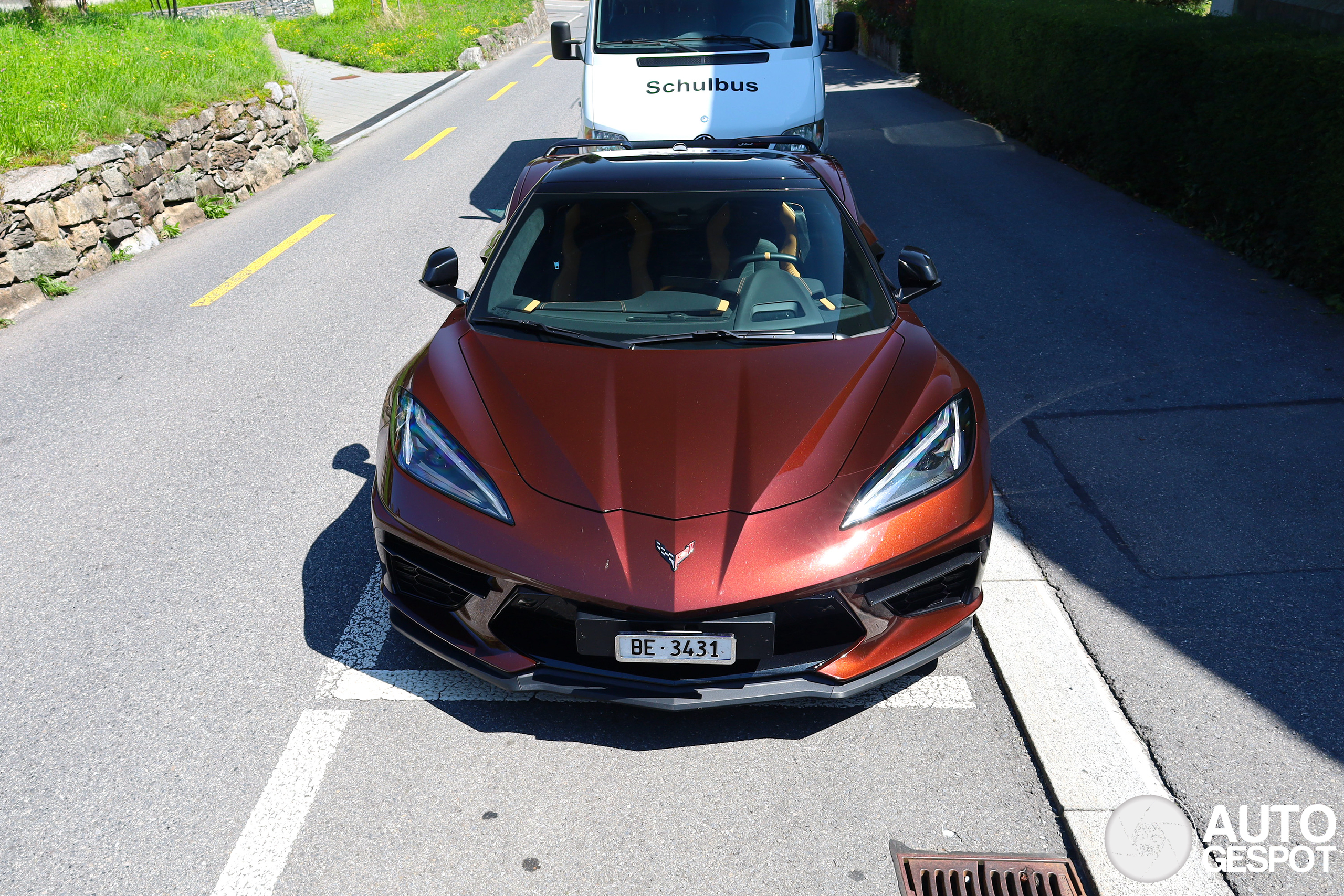 Na Thun doorgereden naar het volgende dorpje, Spiez. In het centrum trof ik al snel deze Corvette aan. Superlekker exemplaar in dit kleurtje! -/- After Thun, I drove on to the next village, Spiez. In the center, I quickly came across this Corvette. A super nice model in this color! My first C8 convertible.