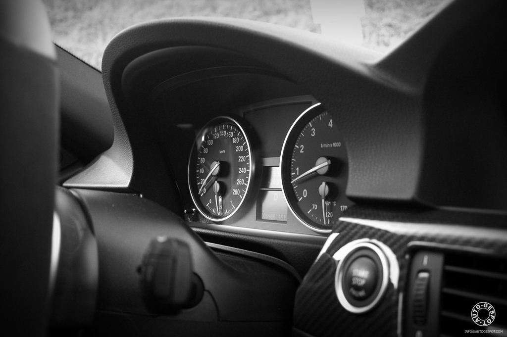 Ook binnenin is direct zichtbaar dat de heren van BMW hun best hebben gedaan om dit model écht sportief te maken. De perfect zittende kuipstoelen waarop BMW Performance staat, vertellen een spotter dat dit geen standaard huis-en tuin model is. Het interieur is volledig van carbonfiber voorzien. Verreweg de gaafste feature is een sportstuur met achterop flippertjes, een klein schermpje waarop je informatie kunt opvragen over bijvoorbeeld temperatuur van de vloeistoffen of de g-krachten die je ten onder gaat en tot slot zitten er lichtjes op die je vertellen wanneer het tijd is om over te schakelen naar een volgende versnelling. Erg stoer!
