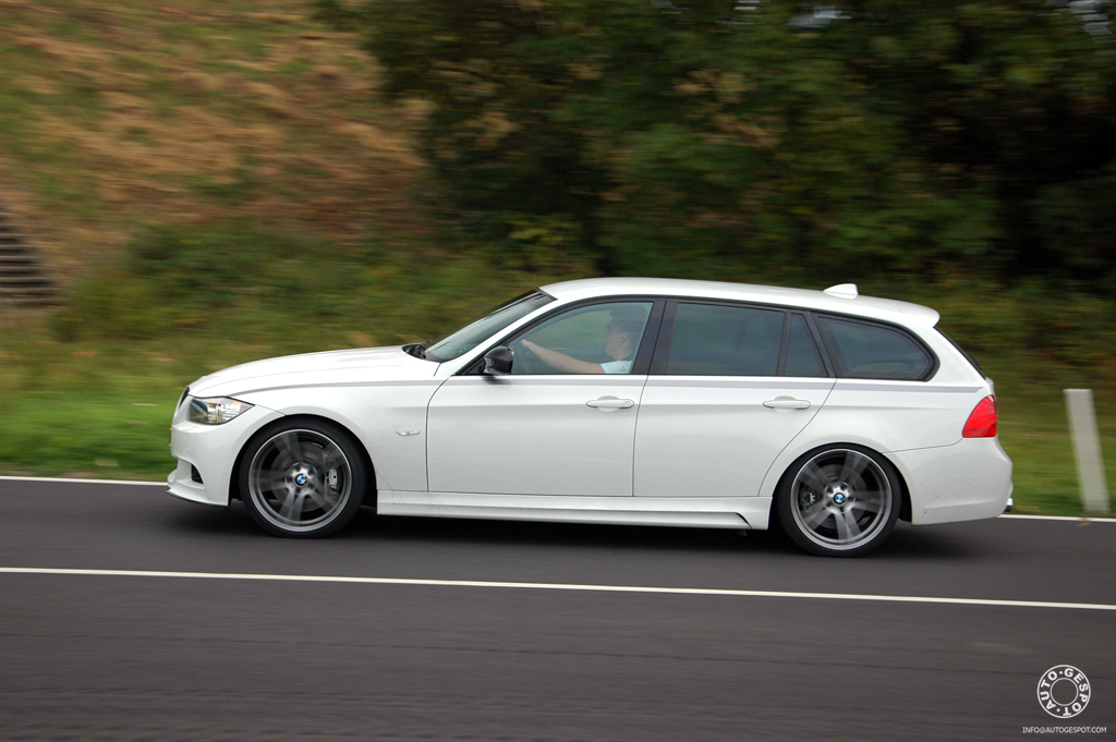 Wat maakt deze wagen dan anders dan een M-motorsport model en wat is het verschil met een standaard 335i. Een Performance Power Kit kost je totaal z'n € 15.000,- bovenop de standaard ruim € 60.000,- die je kwijt bent voor een 335i Touring. Een smak geld en de eerste blik op de auto verraadt nog niet veel over de ware aard van dit Performance beestje.