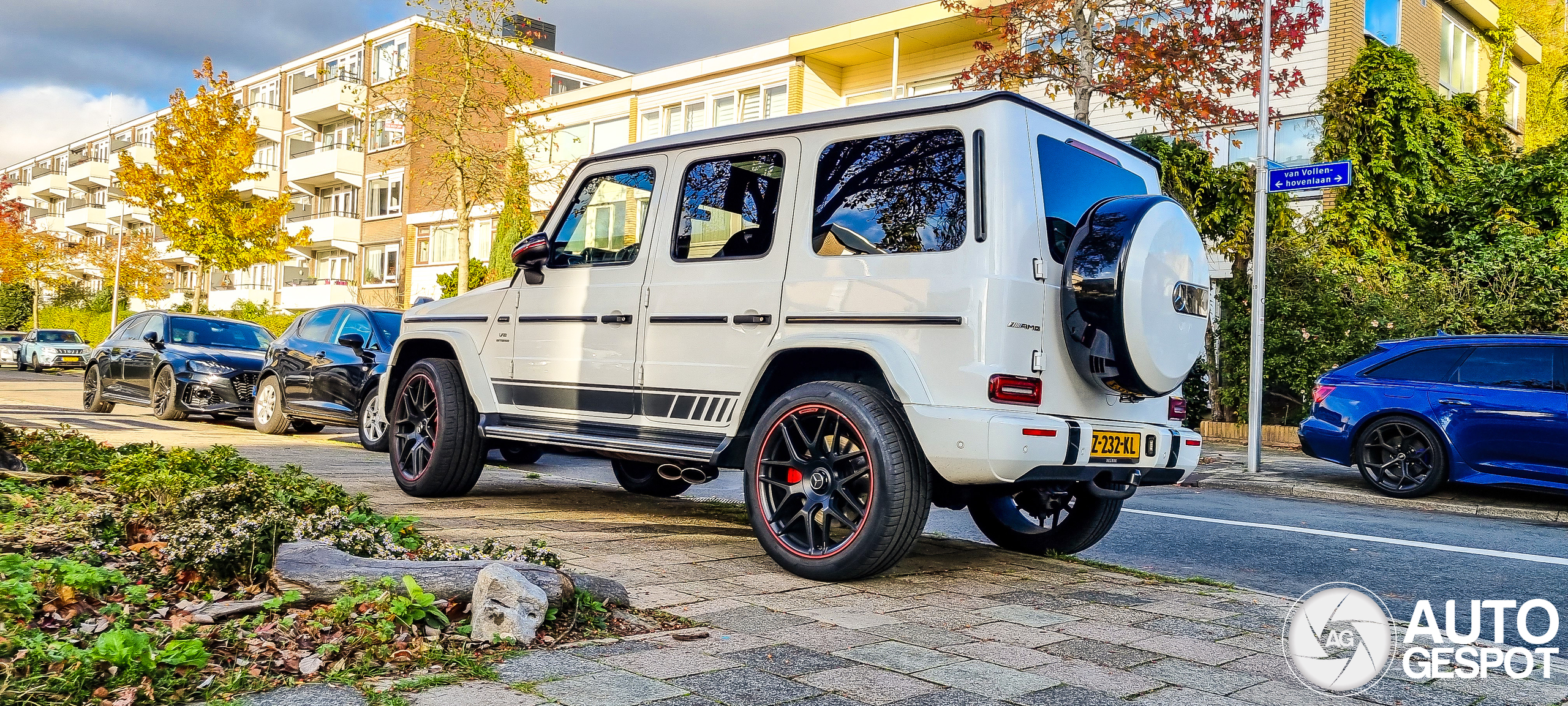De vijfde spot van deze trouwerij is een spierwitte G 63 Edition 1. Ook erg fraai was deze om te zien en om snel mee te kunnen pakken. Was omringd met meerdere Lambo's en andere power SUV's. Kanaleneiland, Utrecht (telefoonfoto's).