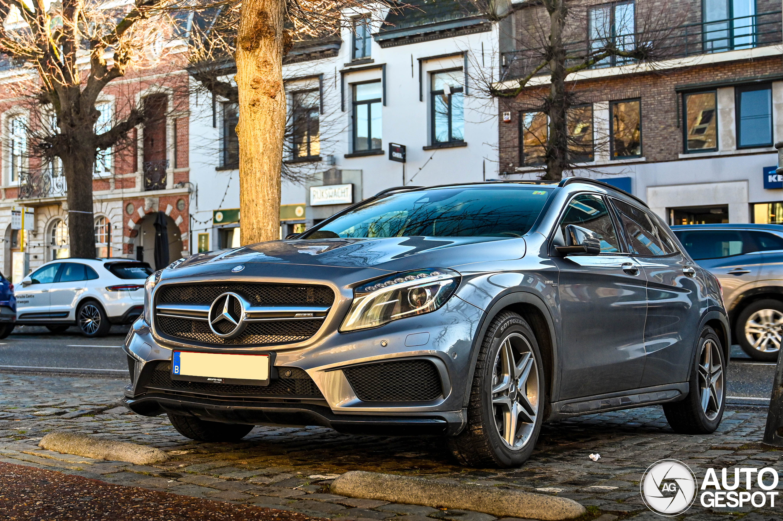 Haha, deze is dus juist niet van de Benz generatie! Achterop staat immers links AMG, en rechts GLA 45. Bij de Benz staat het andersom. Vrij ingetogen exemplaar zo alles in het grijs.