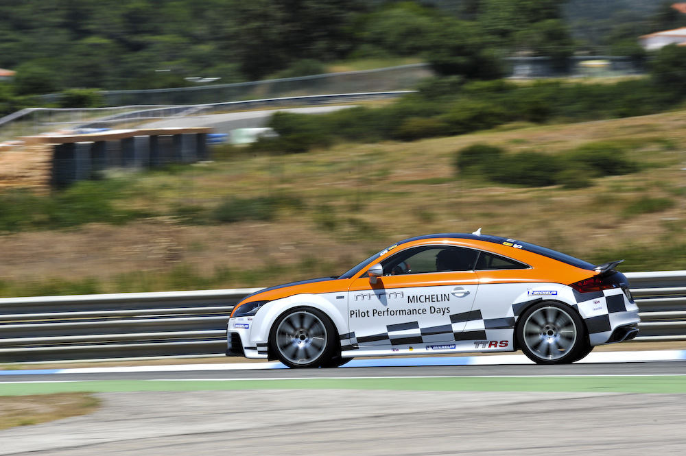 Op woensdagmiddag stapten we het overvolle vliegtuig in met eindbestemming Lissabon. Dit met een dag racen op het circuit op donderdag als vooruitzicht. Het circuit was niet voor slechts één dag afgehuurd, maar liefst tien dagen kwamen er bloggers en journalisten van over de hele wereld naar Estoril om door Michelin in de watten gelegd te worden. Michelin doet dit natuurlijk niet omdat we zulke lieve bloggers zijn. Ze wilden ons eens het verschil tussen de verschillende banden laten voelen die zij produceren. Hiervoor waren niet de meest lullige auto's van stal gehaald. Verschillende topmodellen van Audi en Porsche waren aanwezig en voorzien van verschillende Michelin banden. Of er verschil merkbaar is? Zeker en vast! Het verschil tussen de verschillende banden is immens. De banden die onder de auto's waren gemonteerd waren Michelin slicks, Michelin Pilot Sport Cup (semi-slick) en de Pilot Sport PS2. Op de dag zelf kregen we verschillende workshops over veiligheid van banden en vooral over waarin Michelin zelf goed is. Het behalen van overwinningen bij bekende sporten zoals de 24-uur van Le Mans (veertien op rij en twintig in totaal) en de Formule 1 (in veertien jaar 102 overwinningen met verschillende teams).