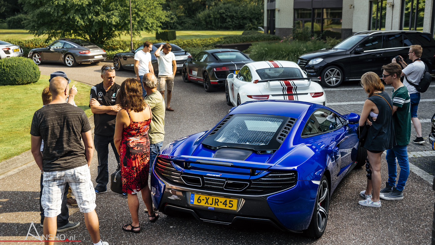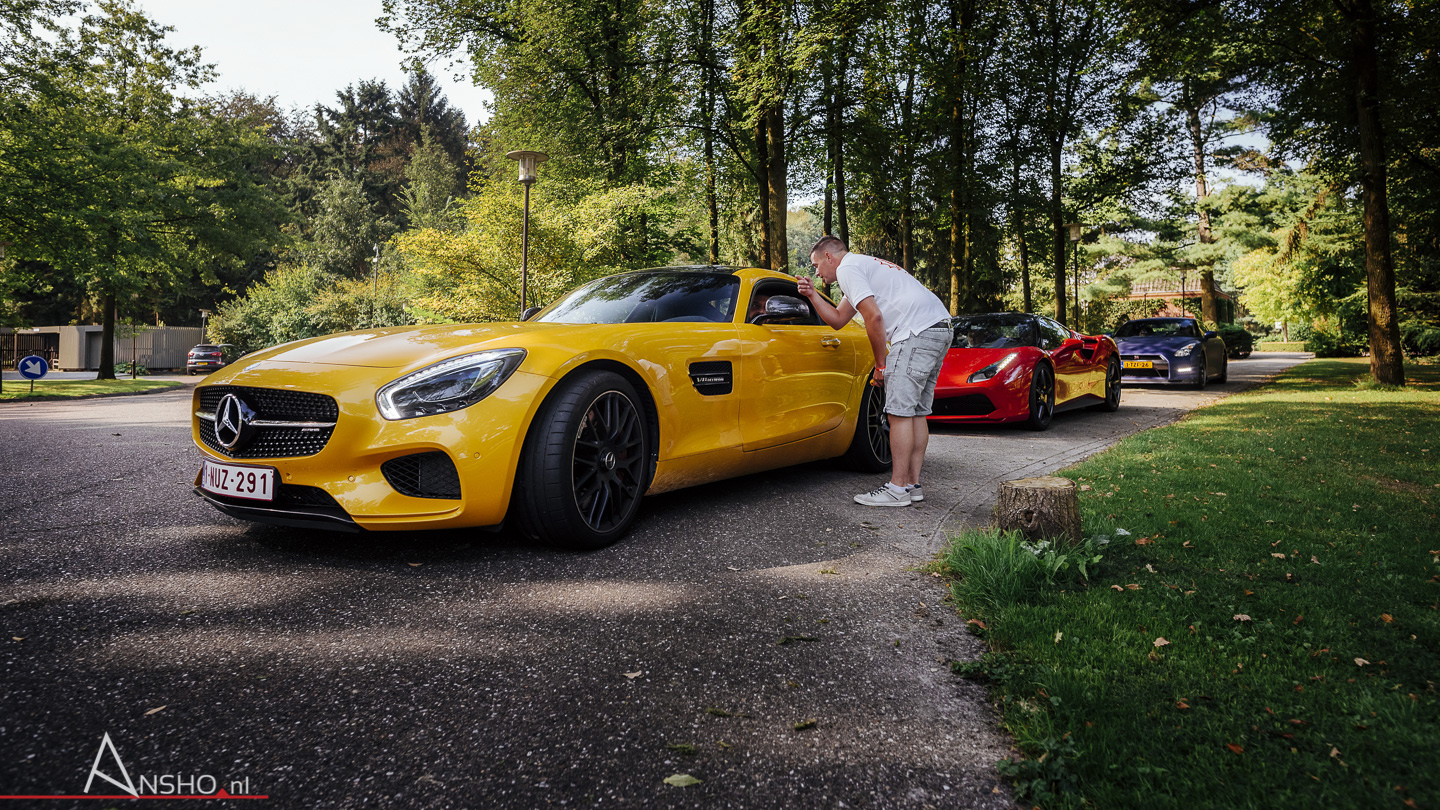 We verzamelden zaterdag 27 augustus op Landgoed Groenendael in Hilvarenbeek. Een ideale locatie met een prachtige omgeving en een heerlijk ontvangst op het terras. De eerste auto's stromen om 9.30 uur al binnen en vanaf dan gaat het snel. Om 11.30 is het landgoed gevuld met een grote variatie aan supercars. Dat is juist wat deze rit zo leuk maakt. Denk aan een mix van de Porsche 991 GT3 RS, Ferrari California, Ferrari F12tdf, Aston Martin V12 Vantage S, Mercedes-Benz ML 63 AMG, McLaren 650S en ga zo maar door.